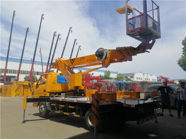新款21米藍牌江鈴高空作業(yè)車配置參數(shù):新款國六江鈴順達單排駕駛室,軸距3360mm,配備五十鈴116馬力正宗國五發(fā)動機,5檔變速箱,江齒五檔變速箱,7.00R16原廠鋼絲胎,四節(jié)六邊形伸縮臂,最大作業(yè)幅度10.5m(可強制);最大作業(yè)高度:21m;最大作業(yè)高度時的作業(yè)幅度4.7m,360°全回轉(zhuǎn)。前V后H型支腿,支腿橫向跨距(mm)3605,3670;縱向跨距(mm)3640,3810;吊藍額定載荷≤200㎏。吊藍尺寸:1100X650X1150,靜液調(diào)平,帶油缸鎖止功能,車架和吊藍雙位操作。帶應急動力單元!帶遙控操作。